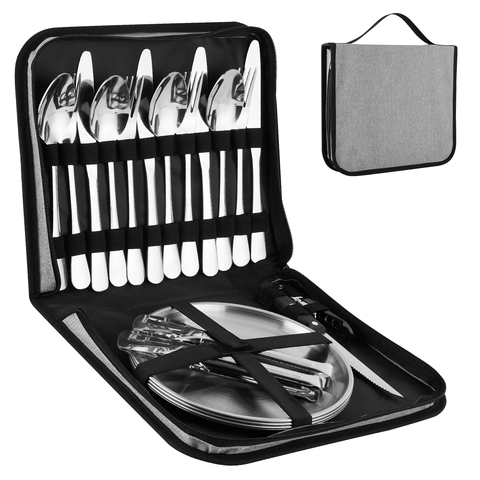 Set di posate e piatti da viaggio da esterno con borsa per il trasporto,